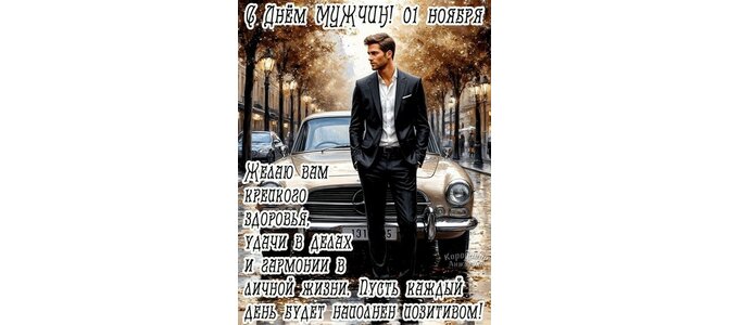 С днем мужчин! 1 ноября. Желаю вам крепкого здоровья, удачи в делах и гармонии в личной жизни. Пусть каждый день будет наполнен позитивом!