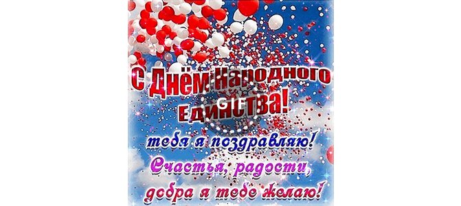 С днем народного единства тебя я поздравляю! Счастья, радости, добра я тебе желаю!