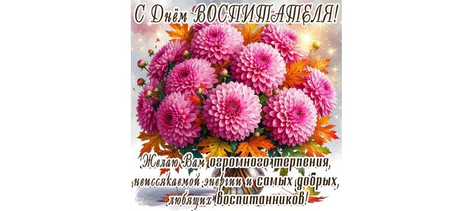 С днем воспитателя! Желаю Вам огромного терпения, неиссякаемой энергии и самых добрых, любящих воспитанников!