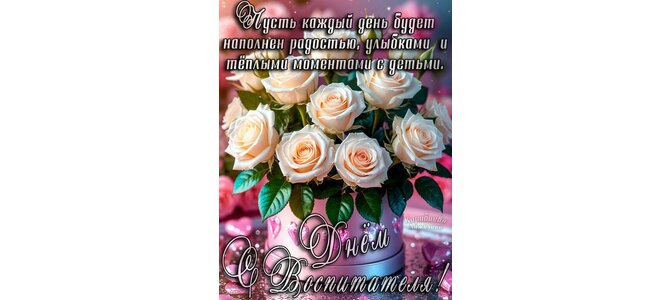Пусть каждый день будет наполнен радостью, улыбками и тёплыми моментами с детьми. С днем воспитателя!