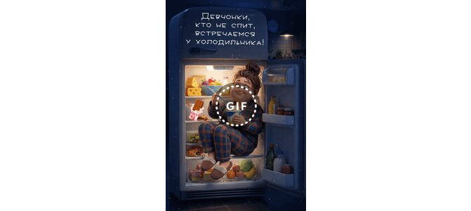 Анимированная открытка "Девчонки, кто не спит, встречаемся у холодильника!"