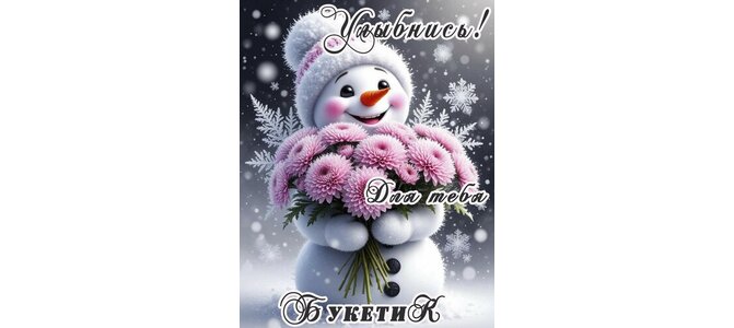 Теги:для тебя букетик, для тебя от души, зима, снег, снеговик, улыбнись, пожелания на каждый день, розоввое, цветы, для настроения