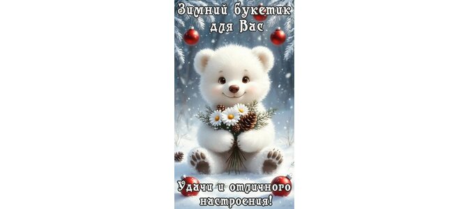 Теги:для тебя и от души, мишка, ромашки, цветы, зима, снег, пожелания на каждый день, про настроение, шишки, новогодние игрушки