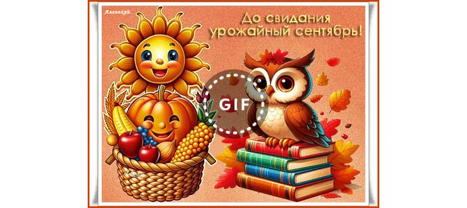 Анимированная открытка "До свидания урожайный сентябрь!"