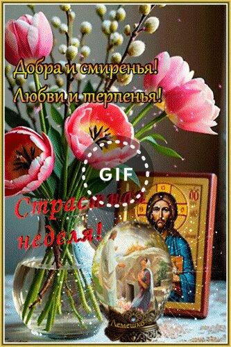 Анимированная открытка "Добра и смиренья! Любви и терпенья! Страстная неделя!"