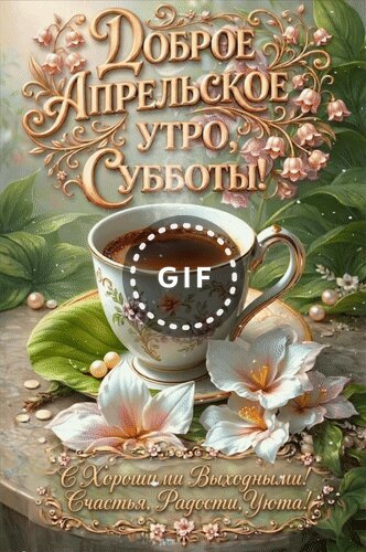 Анимированная открытка "Доброе Апрельское утро Субботы! С Хорошими Выходными! Счастья, Радости, Уюта!"