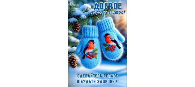 Теги:зима, доброе утро, одевайтесь теплее, морозное утро, варежки, снегири