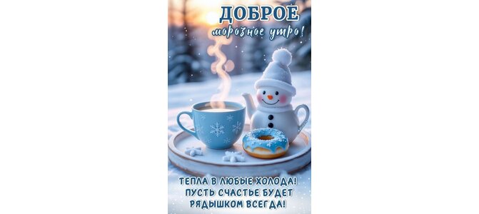 Открытка "ДОБРОЕ МОРОЗНОЕ УТРО! ТЕПЛА В ЛЮБЫЕ ХОЛОДА! ПУСТЬ СЧАСТЬЕ БУДЕТ РЯДЫШКОМ ВСЕГДА!"
