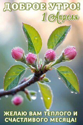 Открытка "ДОБРОЕ УТРО! 1 АПРЕЛЯ! ЖЕЛАЮ ВАМ ТЕПЛОГО И СЧАСТЛИВОГО МЕСЯЦА!"