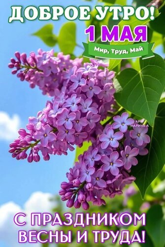 Открытка "ДОБРОЕ УТРО! 1 МАЯ. МИР, ТРУД, МАЙ! С ПРАЗДНИКОМ ВЕСНЫ И ТРУДА!"