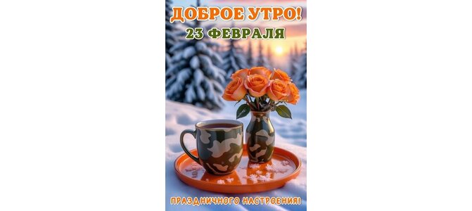 Открытка "ДОБРОЕ УТРО! 23 ФЕВРАЛЯ. ПРАЗДНИЧНОГО НАСТРОЕНИЯ!"