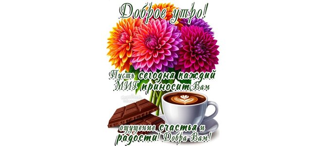 Доброе утро! Пусть сегодня каждый миг приносит Вам ощущение счастья и радости! Добра Вам!