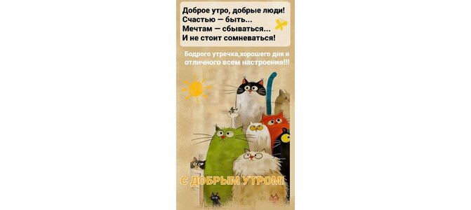 Доброе утро, добрые люди! Счастью — быть... Мечтам — сбываться... И не стоит сомневаться! Бодрого утречка, хорошего дня и отличного всем настроения! С добрым утром!