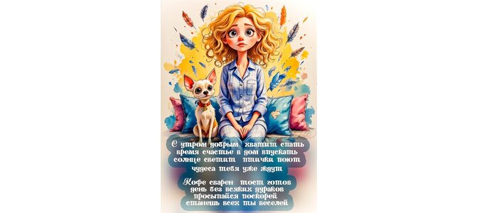 С утром добрым хватит спать время счастье в дом впускать солнце светит птички поют чудеса тебя уже ждут Кофе сварен тост готов день без всяких дураков просыпайся поскорей станешь всех ты веселей