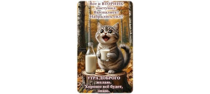 Вот и Вторник наступил. Выспались? Набрались сил? Утра доброго желаю. Хорошо всё будет, знаю.