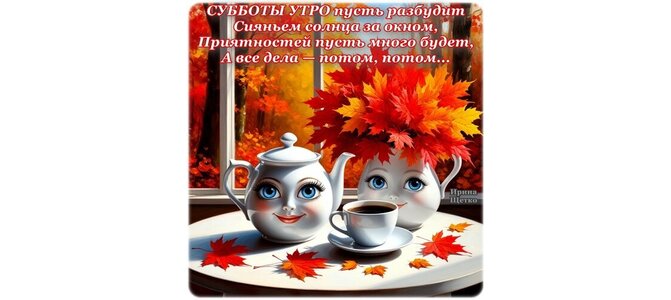 Субботы утро пусть разбудит сияньем солнца за окном. Приятностей пусть много будет, а все дела потом, потом...