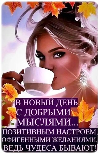 В новый день с добрыми мыслями, позитивным настроем, офигенными желаниями. Ведь чудеса бывают!