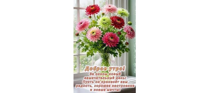Доброе утро! За окном новый замечательный день! Пусть он принесёт вам радость, хорошее настроение и новые мечты!