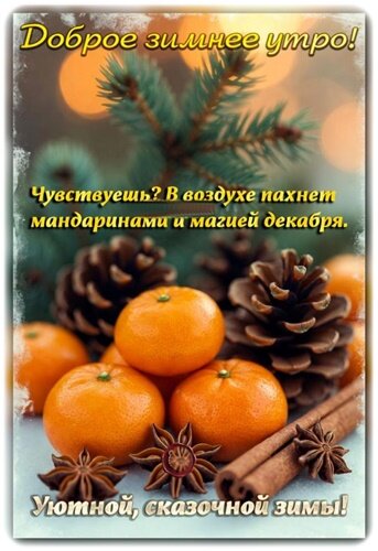 Доброе зимнее утро! Чувствуешь? В воздухе пахнет мандаринами и магией декабря. Уютной, сказочной зимы!