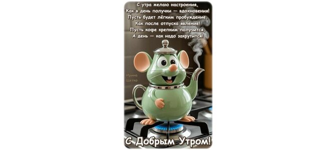 С утра желаю настроения, как в день получки — вдохновения! Пусть будет лёгким пробуждение, как после отпуска явление! Пусть кофе крепким получится, а день — как надо закрутится! С добрым утром!
