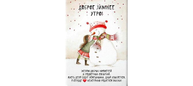 Доброе зимнее утро! Желаю добрых новостей и радостных событий. Пусть дела будут успешными, душа улыбается, а сердце неустанно радуется жизни!