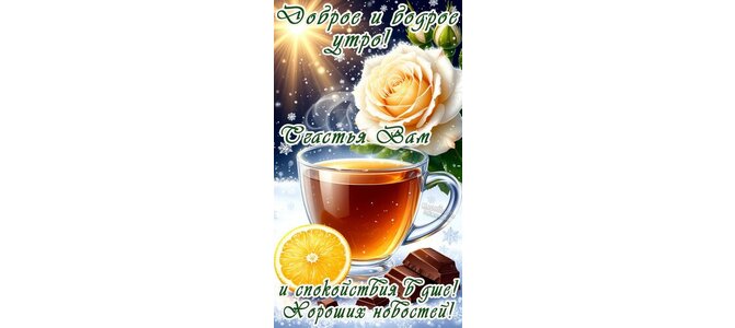 Теги:доброе утро, утро, чай, чашка чая, лимон, снег, зима, шоколад, цветы, розы, пожелания на каждый день