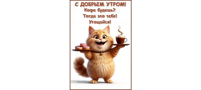 С добрым утром! Кофе будешь? Тогда это тебе! Угощайся!