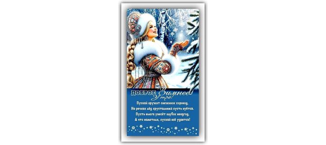 Доброе зимнее утро! Пускай кружит снежинок хоровод, на речках лёд хрустальный пусть куётся. Пусть вьюга унесёт клубок невзгод, а что наметили, пускай всё удается!