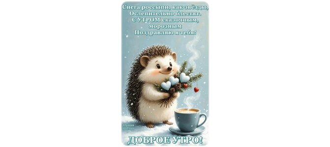 Снега россыпи, как звёзды, ослепительно блестят. С утром сказочным, морозным поздравляю я тебя! Доброе утро!