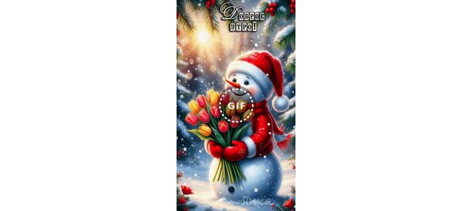 Теги:доброе утро, утро, снег, зима, снеговик, тюльпаны, пожелания на каждый день, гиф, анимация, красивая картинка