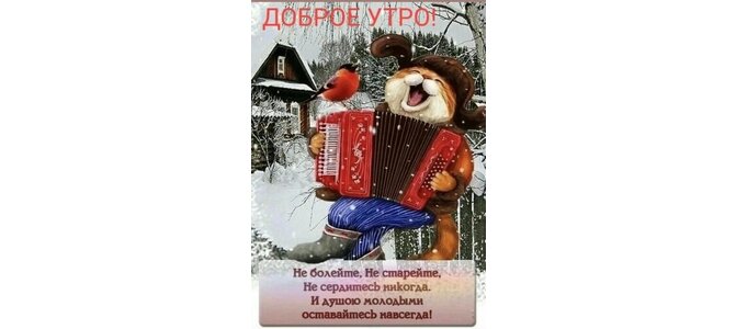 Доброе утро! Не болейте, не старейте, не сердитесь никогда. И душою молодыми оставайтесь навсегда!
