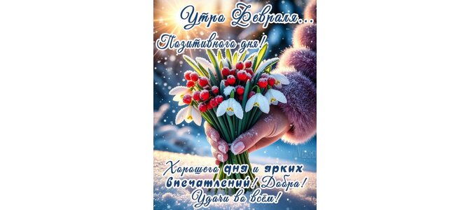 Теги:доброе утро, хорошего дня, цветы, женские руки, зима, снег, лес, подснежники, ягоды, добра, ярких впечателений, пожелания на каждый день, удачи