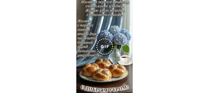 Желаю в зеркале увидеть счастливую улыбку. Желаю утро начать с ароматного кофе. Желаю с первых минут этого дня получить большой заряд позитива и уверенности! С добрым утром!