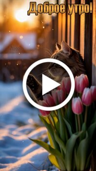 Теги:доброе утро, утро, видео пожелание, видео с музыкой, добра, удачи, позитива, пожелания на каждый день, цветы зима, снег, кот, тюльпаны