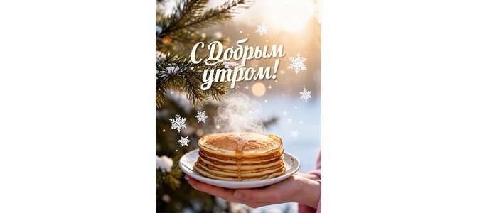 Теги:доброе утро, масленица продолжается, масленица, снег, зима, ель, пожелания на каждый день, красивая картинка, блины с медом, блинчики