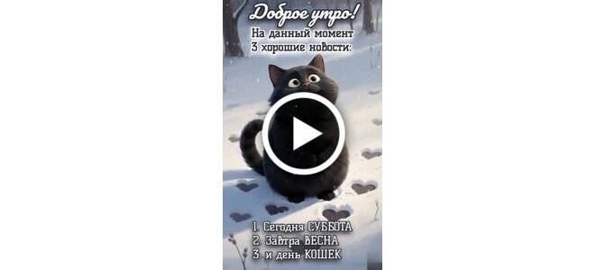 Доброе утро! На данный момент 3 хорошие новости: 1. Сегодня суббота 2. Завтра весна 3. И день кошек.