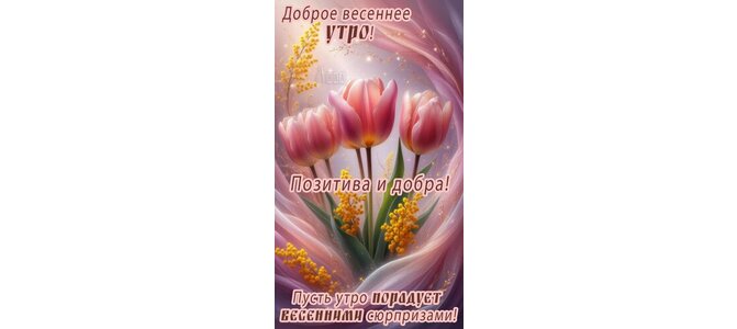 Теги:доброе утро, утро, позитива, добра, весенних сюрпризов, цветы, тюльпаны, миимоза, мимоза, пожелания на каждый день