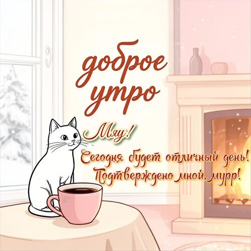 Теги:доброе, утро, с добрым, утром, доброго, утра, кошка, открытка, с пожеланиями, пожелания, мяу, кофе, чашка