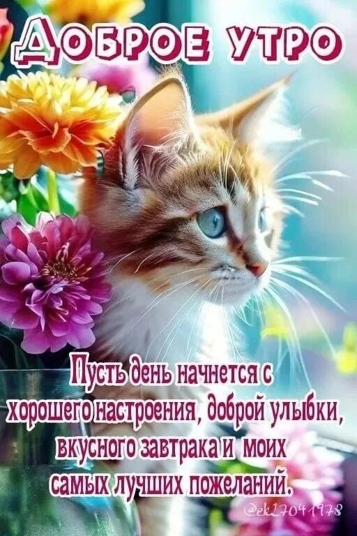 Пожелание с добрым утром. Доброе утро. Пусть день начнется с хорошего настроения, доброй улыбки, вкусного завтрака и моих самых лучших пожеланий.