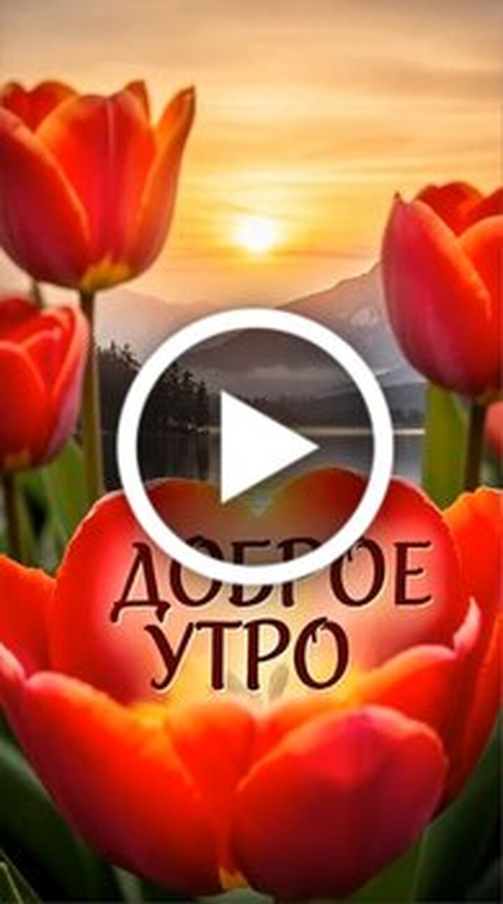 Красивое видео с пожеланием доброго утра. На фоне живописного пейзажа с восходящим солнцем, спокойным озером и величественными горами изображены яркие красные тюльпаны. В центре кадра на лепестках цветов расположена надпись доброе утро. Это видео наполнено теплом и утренней свежестью, идеально подходит для того чтобы подарить близким хорошее настроение и начать день с красоты природы.