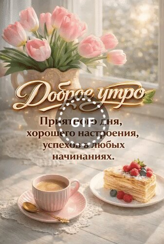 Теги:доброе утро, утро, цветы, гифка, анимация, красивая анимация, кофе, сладкое, пирожное, тюльпаны, приятного дня, хорошего настроения, успехов