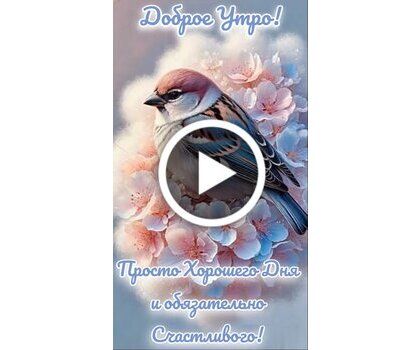Красивое и вдохновляющее видео для доброго утра. На видео запечатлена изящная птица, сидящая среди нежных розовых цветов. На фоне изображена эстетика весеннего цветения, которая создает спокойное и радостное настроение. Текст на видео содержит теплые пожелания хорошего дня и счастливого времяпрепровождения. Это идеальный ролик, чтобы поделиться позитивом с близкими и начать утро с улыбки.