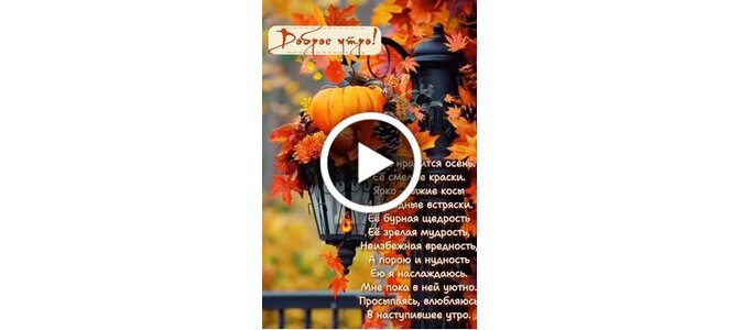 Видеооткрытка "Доброе утро! А мне нравится осень. Её смелые краски. Ярко-рыжие косы. И погодные встряски. "