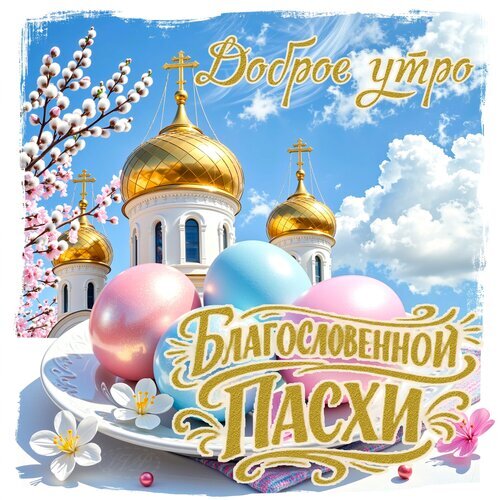 Открытка "доброе утро. благословенной пасхи"