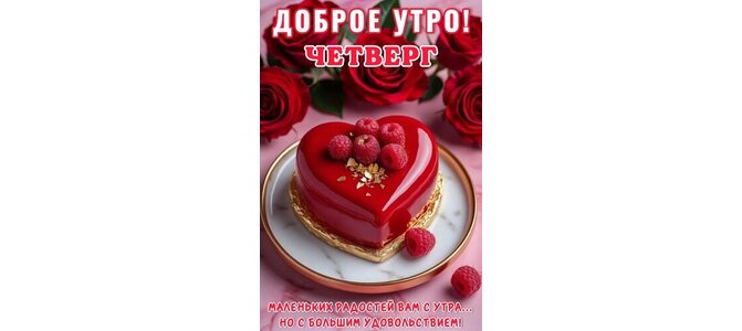 Открытка "ДОБРОЕ УТРО! ЧЕТВЕРГ. МАЛЕНЬКИХ РАДОСТЕЙ ВАМ С УТРА...НОС БОЛЬШИМ УДОВОЛЬСТВИЕМ!"