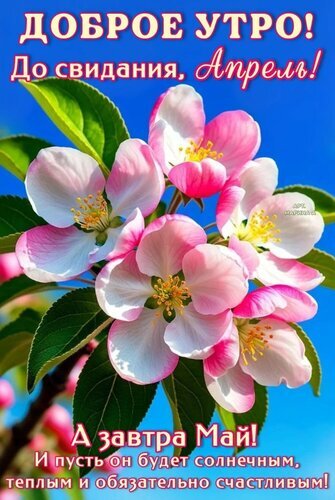 Открытка "ДОБРОЕ УТРО! ДО СВИДАНИЯ, АПРЕЛЬ! А ЗАВТРА МАЙ! И ПУСТЬ ОН БУДЕТ СОЛНЕЧНЫМ, ТЕПЛЫМ И ОБЯЗАТЕЛЬНО СЧА"