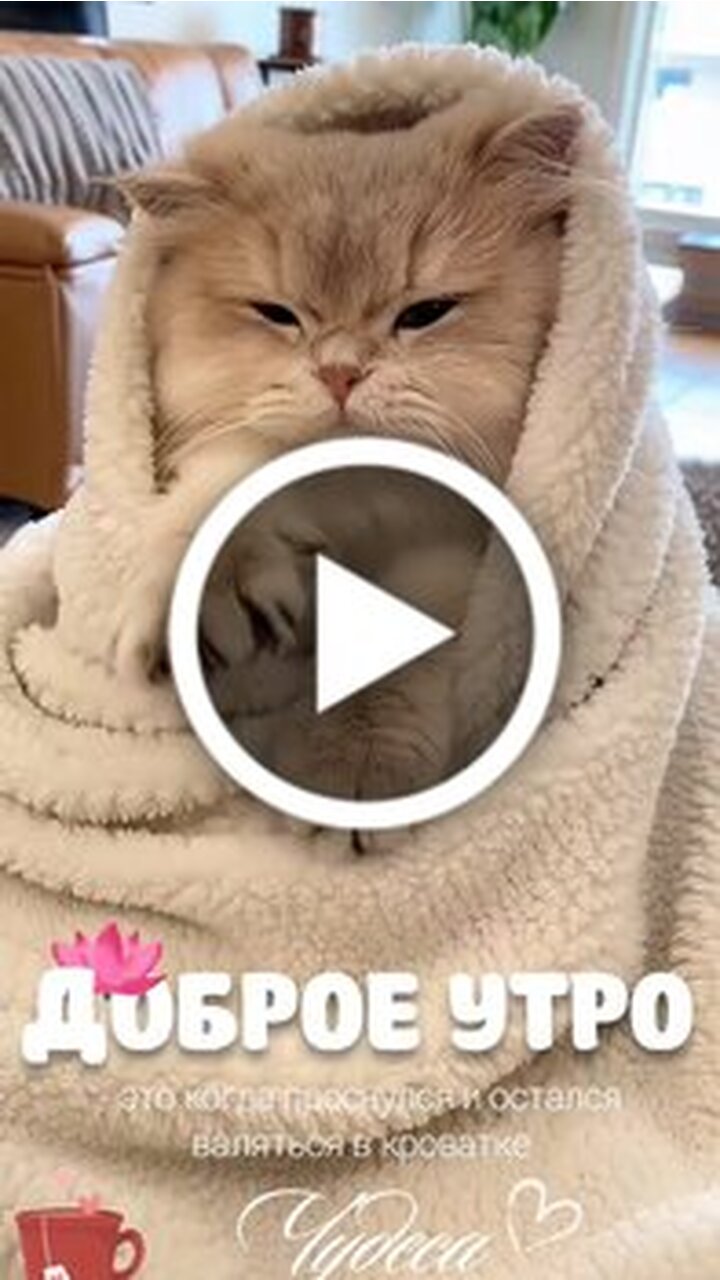 Видеооткрытка "Доброе утро - это когда проснулся и остался валяться в кроватке. Чудеса."
