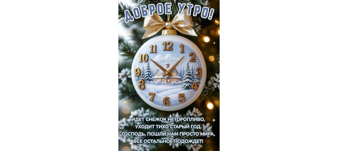 Открытка "ДОБРОЕ УТРО! ИДЕТ СНЕЖОК НЕТОРОПЛИВО, УХОДИТ СТАРЫЙ НОВЫЙ ГОД. ГОСПОДЬ, ПОШЛИ НАМ ПРОСТО МИРА, ВСЕ О"