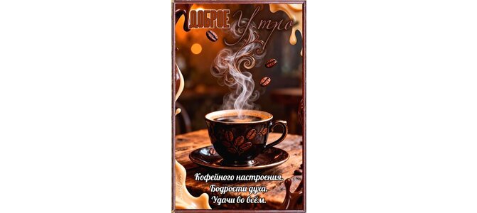Открытка "Доброе утро. Кофейного настроения. Бодрости духа. Удачи во всём."