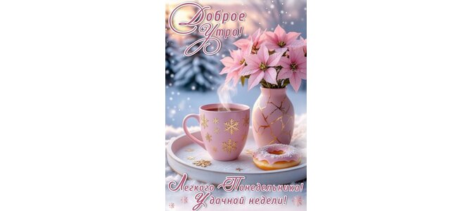 Открытка "Доброе утро! Легкого понедельника! Удачной недели!"